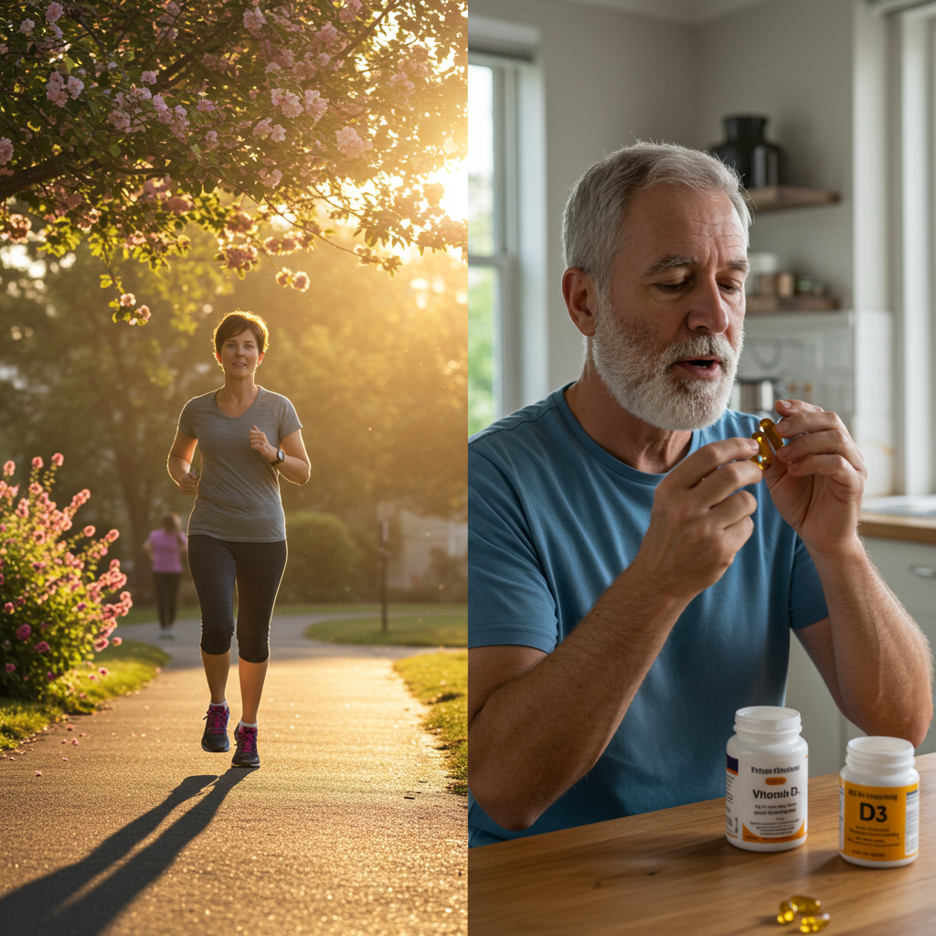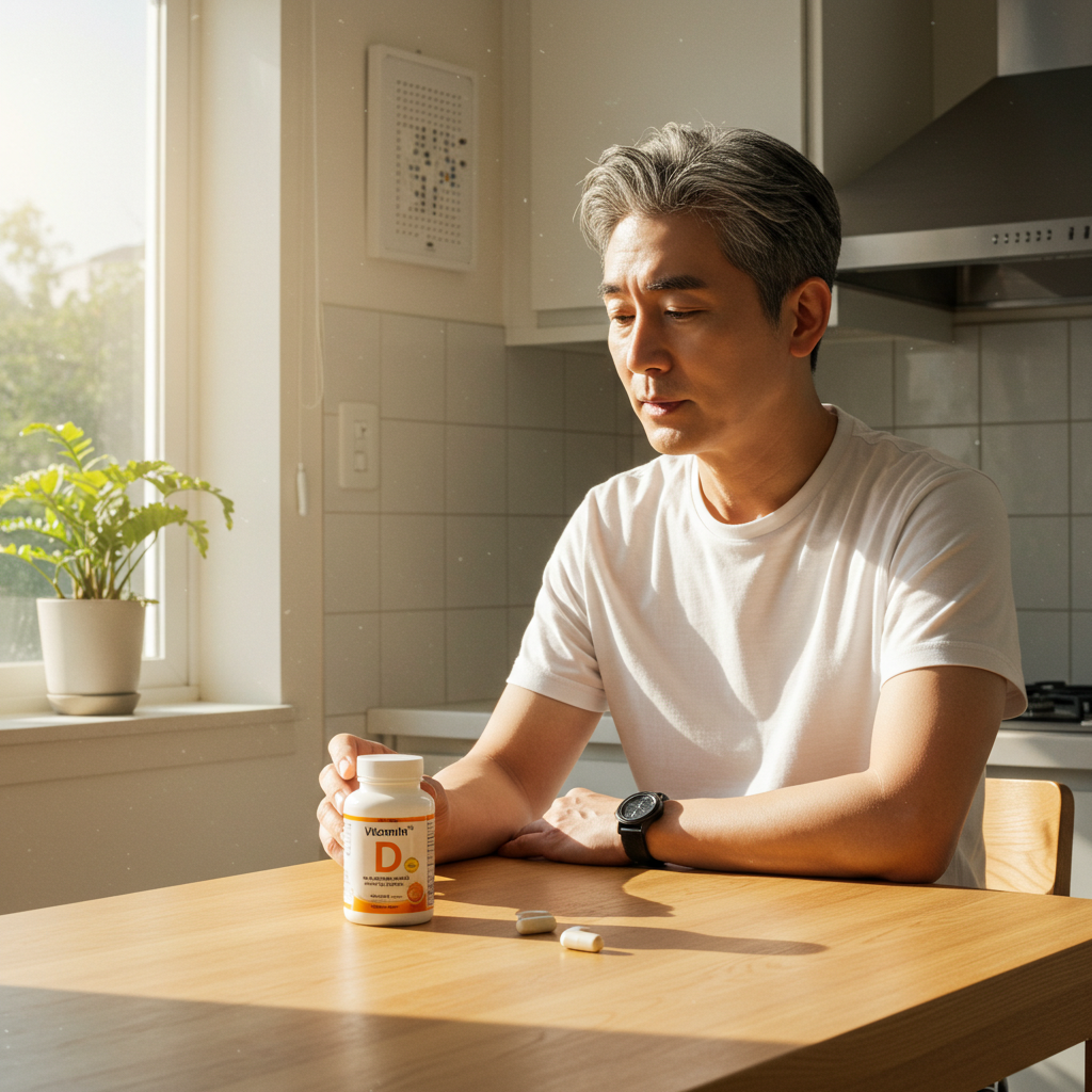 - 실천 팁: 아침에 10~20분 햇빛 쬐기 + 식사 후 비타민D3 오일 캡슐 복용.