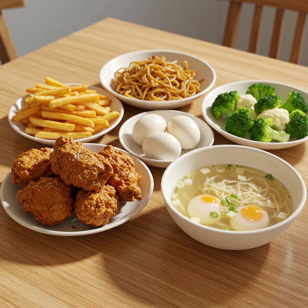 - 삶거나 구운 저지방 단백질(닭가슴살, 두부, 흰살생선)